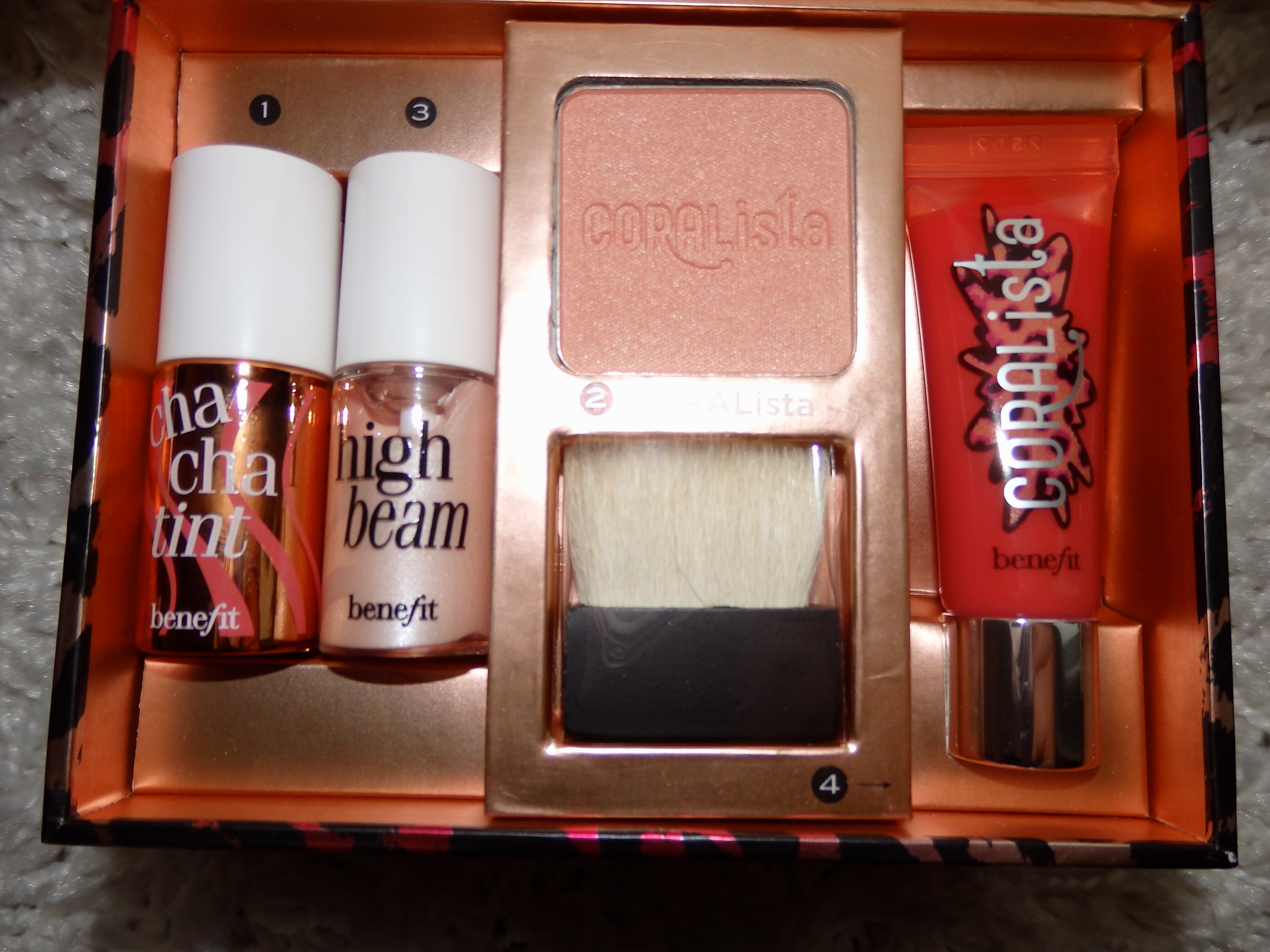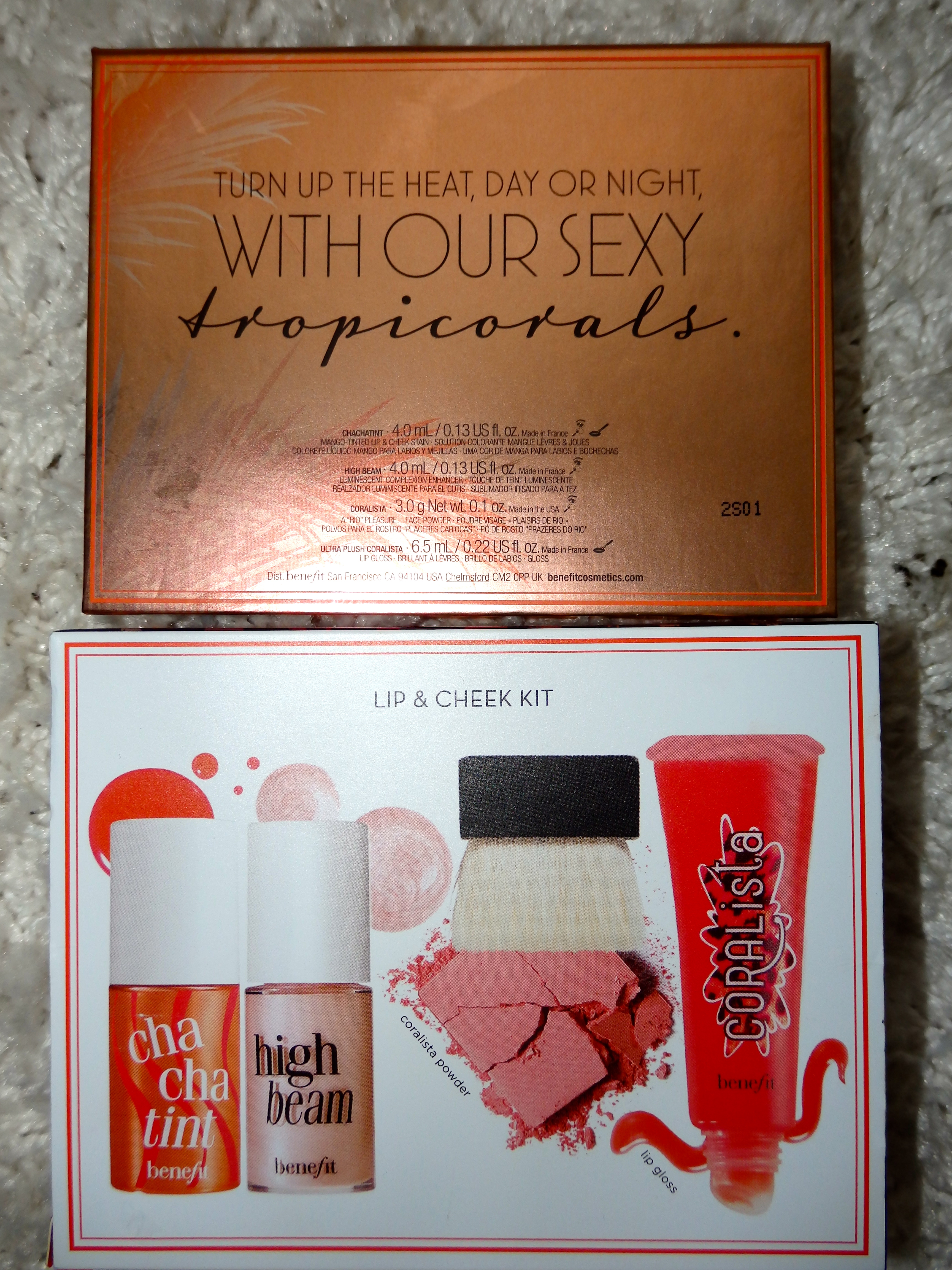 …es wird kalt und geht schnurstracks auf den Winter zu. Das Fashionthema scheint wohl auch schwarz und dunkelblau dieses Jahr zu sein, zumindest was ein kurzer Blick in Zara und H&M ergab. Das geht so nicht weiter, da muss Farbe und Schminkspielzeug her…schwupps, ist das Benefit Lip & Cheek Kit „Tropicoral“ sowie einer der neuen Lipglosse, passend zu den Box’o’powder Blushes, in der Farbe „Dandelion“ in meinem Einkaufskorb gelandet. Bestellt habe ich es online bei Pieper (die haben noch bis 06.11.2013 20% Geburtstagsrabatt mit Code Bfg20Geb)…