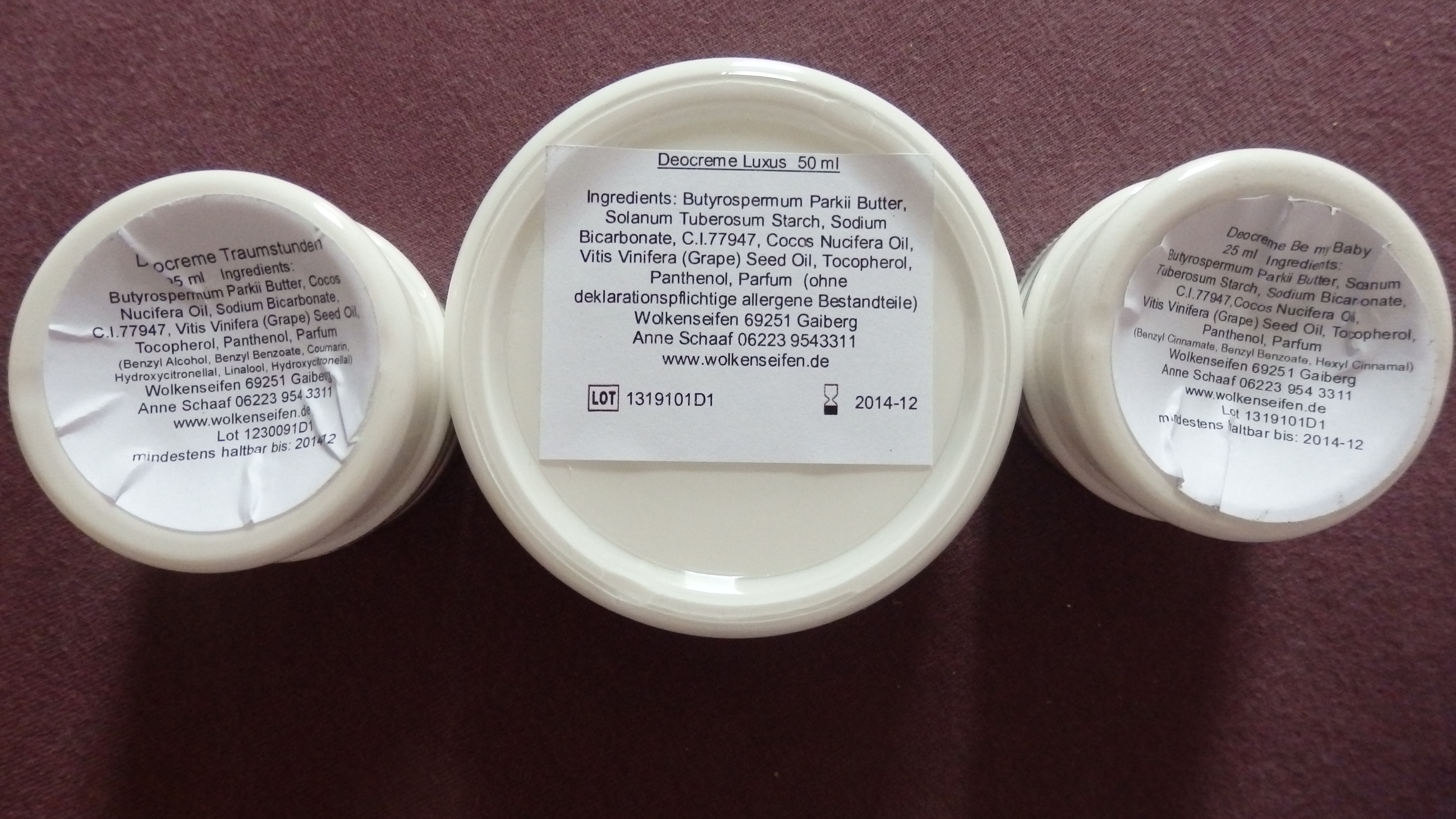 ABER: Ich lasse euch jetzt nicht mit Ökonaturduft unter den Achseln durch die Welt trotten. Auf das Thema Aluminium in Deos bin ich vor 1,5 Jahren gestoßen und nach einigen Tagen Bedenkzeit, habe ich mich entschlossen, diese Produkte (es sind auch Medikamente und andere Kosmetikprodukte mit Aluminiumsalzen versetzt) radikal aus meinem Leben zu entfernen. Dafür mussten aber noch Ersatzprodukte her. Bei Julia von beautyjagd.de bin hier auf die Deocremes von Wolkenseifen gekommen, die ich mir hier online bestellt habe. Damals umfasste meine Order ein Sonderangebot (dass es leider zur Zeit nicht gibt) mit 5 mini Deocremes à 25ml für 20€ plus Versand. Die Ration hat mir nun 1,5 Jahre tägliche Frische beschert. Und da der Vorrat nun leer war, habe ich nachbestellt und zwar dieser feine Nachschub…