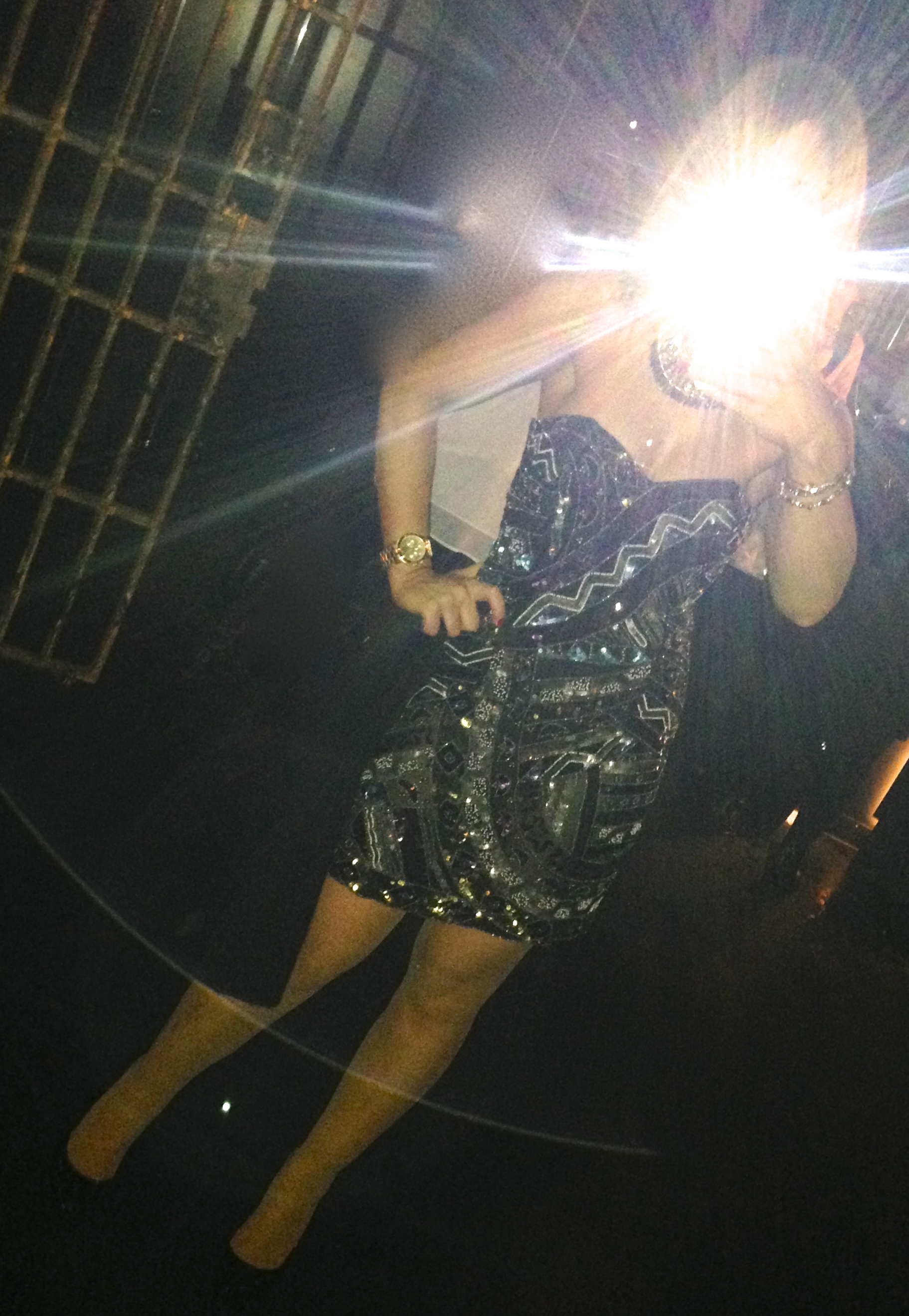 Mit dem Glitzergedanken war ich an dem besagten Abend nicht die Einzige…das Kleid ist schon ein paar Jährchen alt und war eine Errungenschaft aus London von French Connection UK. Schuhe (ich muss dem Namen des Blogs endlich gerecht werden und so langsam mal mit meinen Schuhschätzchen rausrücken) werden hier fotografisch fatal vernachlässigt, allerdings handelt es sich um schwarze Lackpumps von Zara, die ich letzte Woche noch für schlappe 40€ im Sale erstanden habe. Mörderischer Stilettoabsatz mit Plateau… Das schwarze Ding, was ich da noch rechts in der Hand halte, ist meine COS Cashmere Schal. Kein modisches Statement, reines Vergnügen auf dem Weg zum Powderroom nicht so zu frösteln…Cashmere auf nackten Schultern kann ich nur weiterempfehlen…Ach ja, die Kette ist ein Statement und entstammt demselben Streifzug bei Zara und ist hier noch erhältlich. Das war wohl vorerst auch der letzte Ausgang der mir bis zu dieser verfluchten Abgabe vergönnt ist…vielleicht darf ich am Nikolausi mal einen Kinderpunsch trinken..