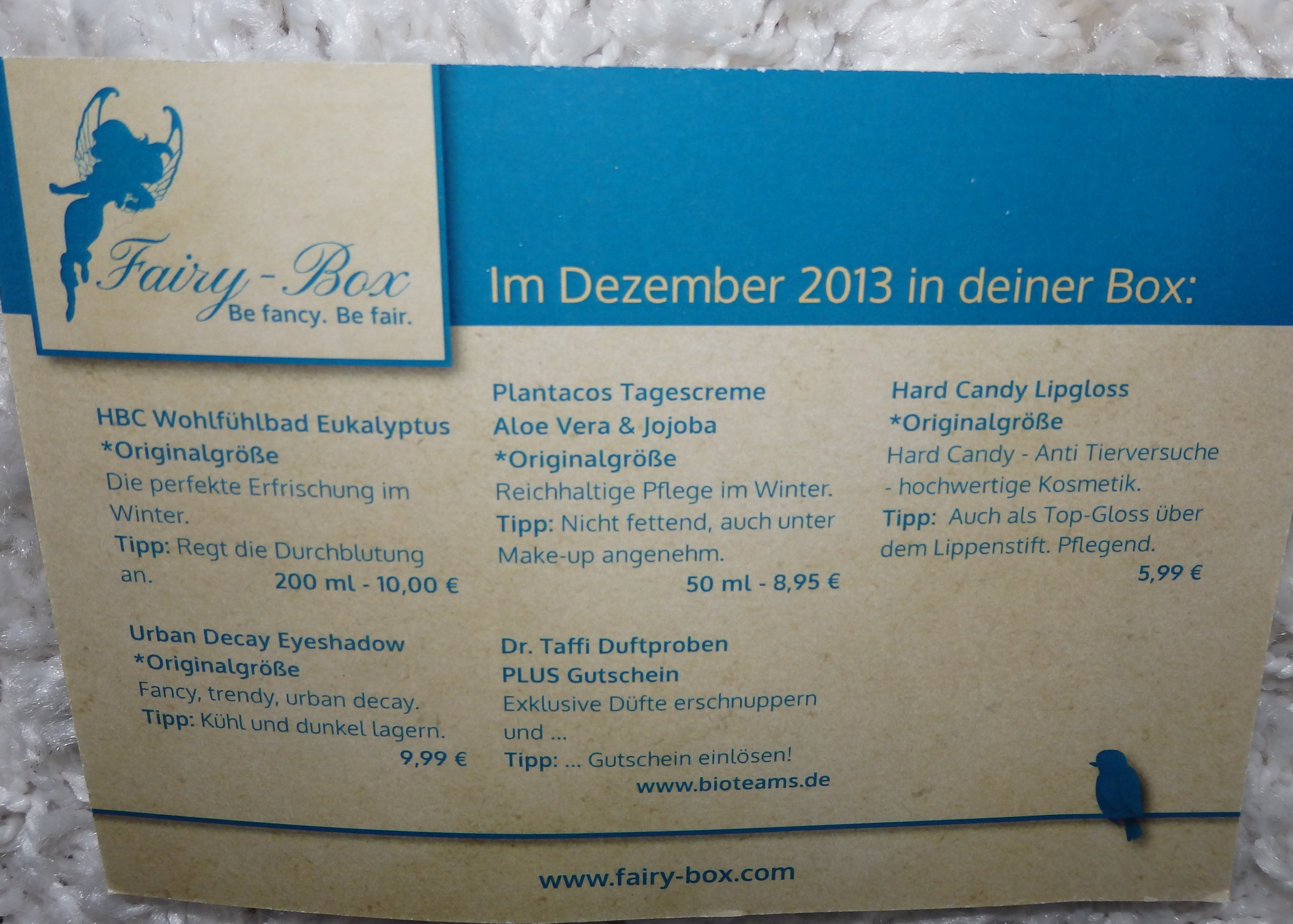 so ganz meine Verfehlung ist dieser verspätete Beitrag allerdings nicht. Nachdem die Fairy Box statt Ende November (ich habe extra per Mail nachgefragt) doch erst Mitte Dezember eingetrudelt ist (habe sie hier bereits ausgepackt), kam die nächste gleich noch vor Weihnachten. Daher ein kleiner Boxenstau im Hause Carrieforshoes. Also nach offizieller Rechnung ist dies nun die Dezember Box und die vorherige die November. Dieser Verwirrung sei es geschuldet, dass ich mit Euch erst jetzt unboxe. So, da wollen wir mal schauen, was so drin war…