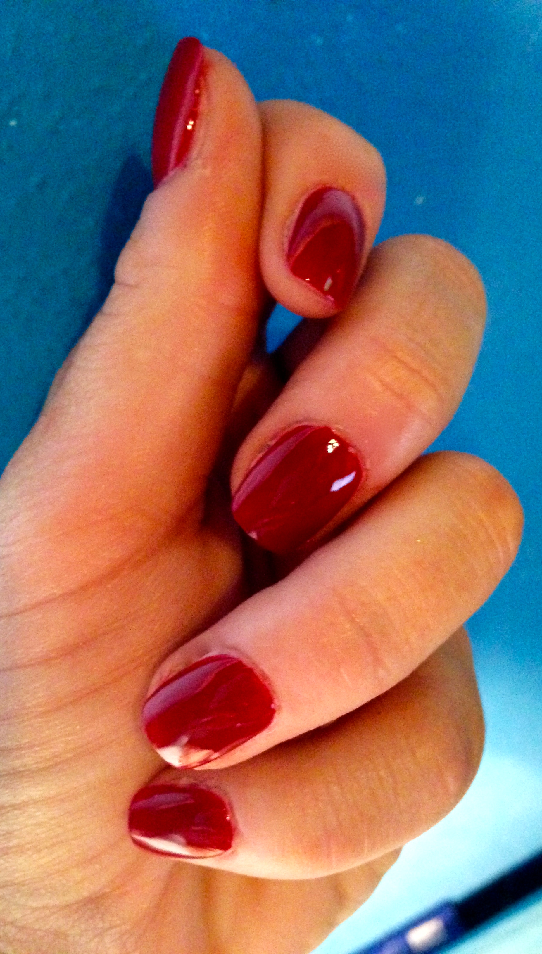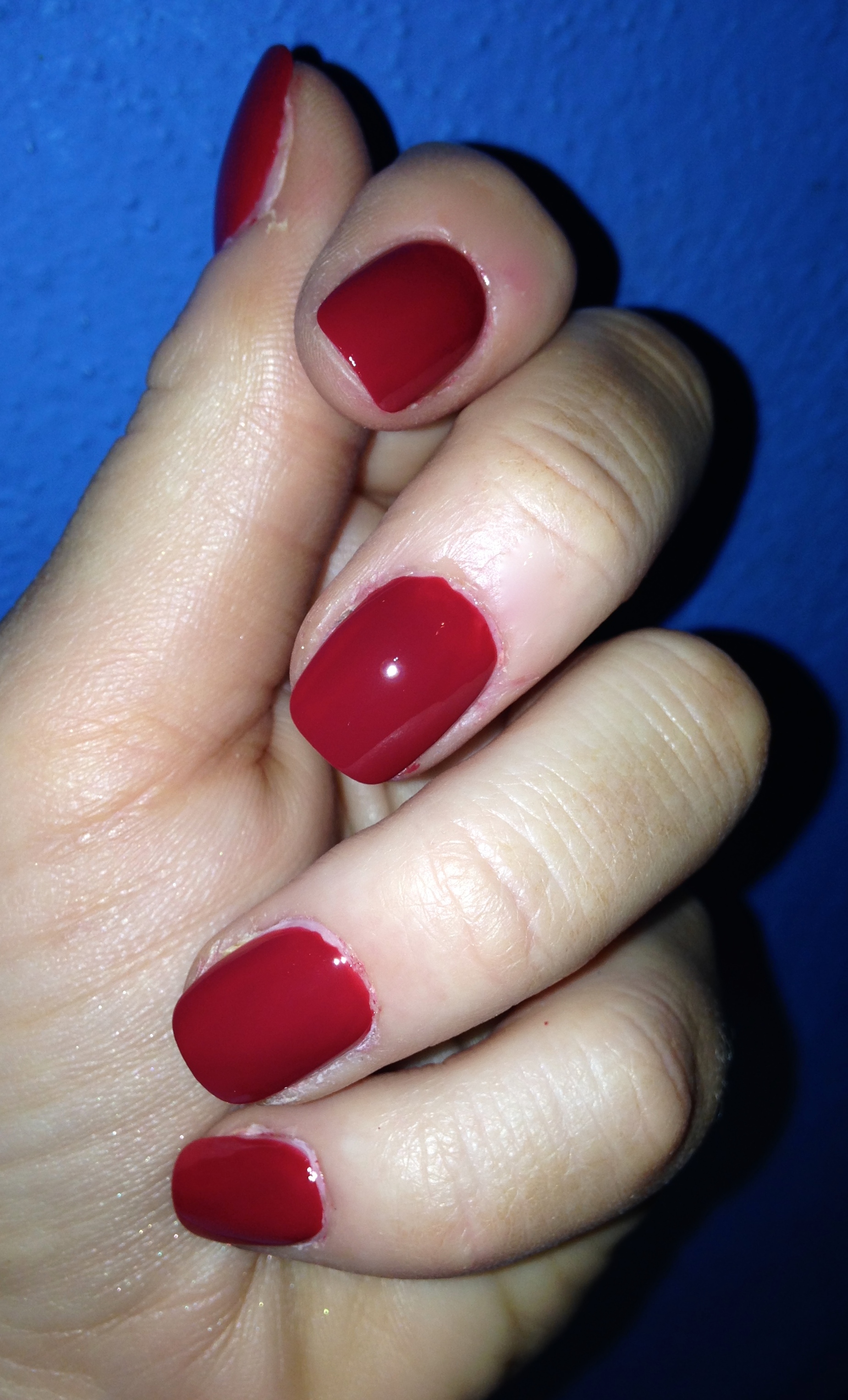 auch in dieser Woche, frisch zum Wochenende gibt es einen Farbbeitrag meiner Wenigkeit auf meinen Fingern. Diesmal im Reportoire habe ich diesmal „First Date at the Golden Gate“ von O.P.I. aus der San Francisco Collection. Einen davon habe ich ja bereits hier vorgeführt. Es handelt sich angesichts des doch noch nahenden Winters um einen klassischen Rotton, warm und eher einen Tick orangestichig. Er erinnert mich so frisch überlackiert mit Essie Good to go (was sonst…) an frisches Blut oder eine gute Bloody Mary…muuuaaaah, gruselig, Hang zu Vampirromanen oder Serien?! Nein, ganz und gar nicht. Selbst einem blasserem Winterteint schmeichelt dieses Rot. Daher eine gute Wahl für diese sonnenlose Jahreszeit und ein elegantes Handstyling.