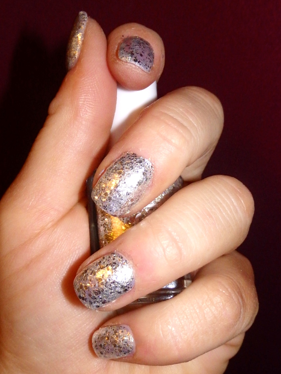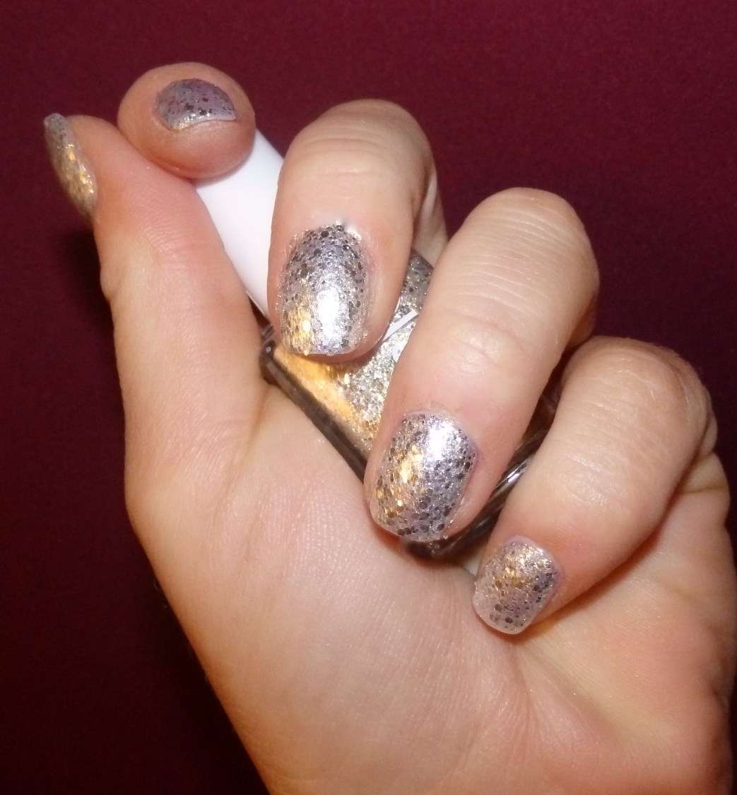 Essie Hors D’ouevres aus der Entrudted Treausures Kollektion ist mir sofort ins Auge gesprungen, sowohl am Counter als auch bereits in der Werbung, mit seinen großen Silberpartikeln und dem Goldstaub, die Textur fühlt sich, wenn dann endlich mal trocken, wirklich sandig und rau an, mit einem Woweffekt, der so einige neugierige Blicke auf dich gezogen hat. Gehalten hat er sogar 8 Tage, was ich schon ganz ordentlich finde. Jetzt bin ich noch neugierig, ob mich noch andere Nuancen noch einmal genauso reißen können, zumindest bin ich jetzt äußerst offen für neue Texturen und Spielereien in Sachen Lack…