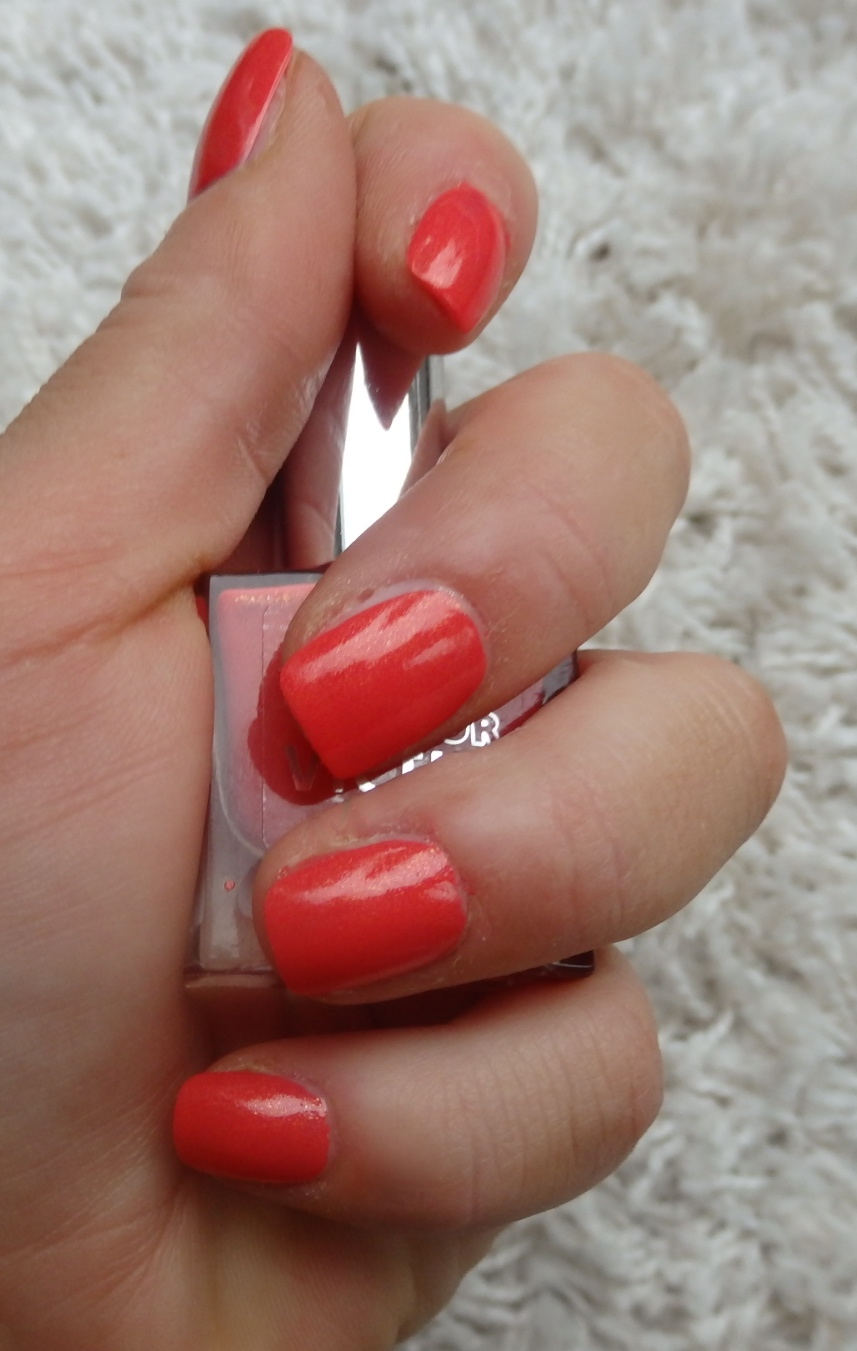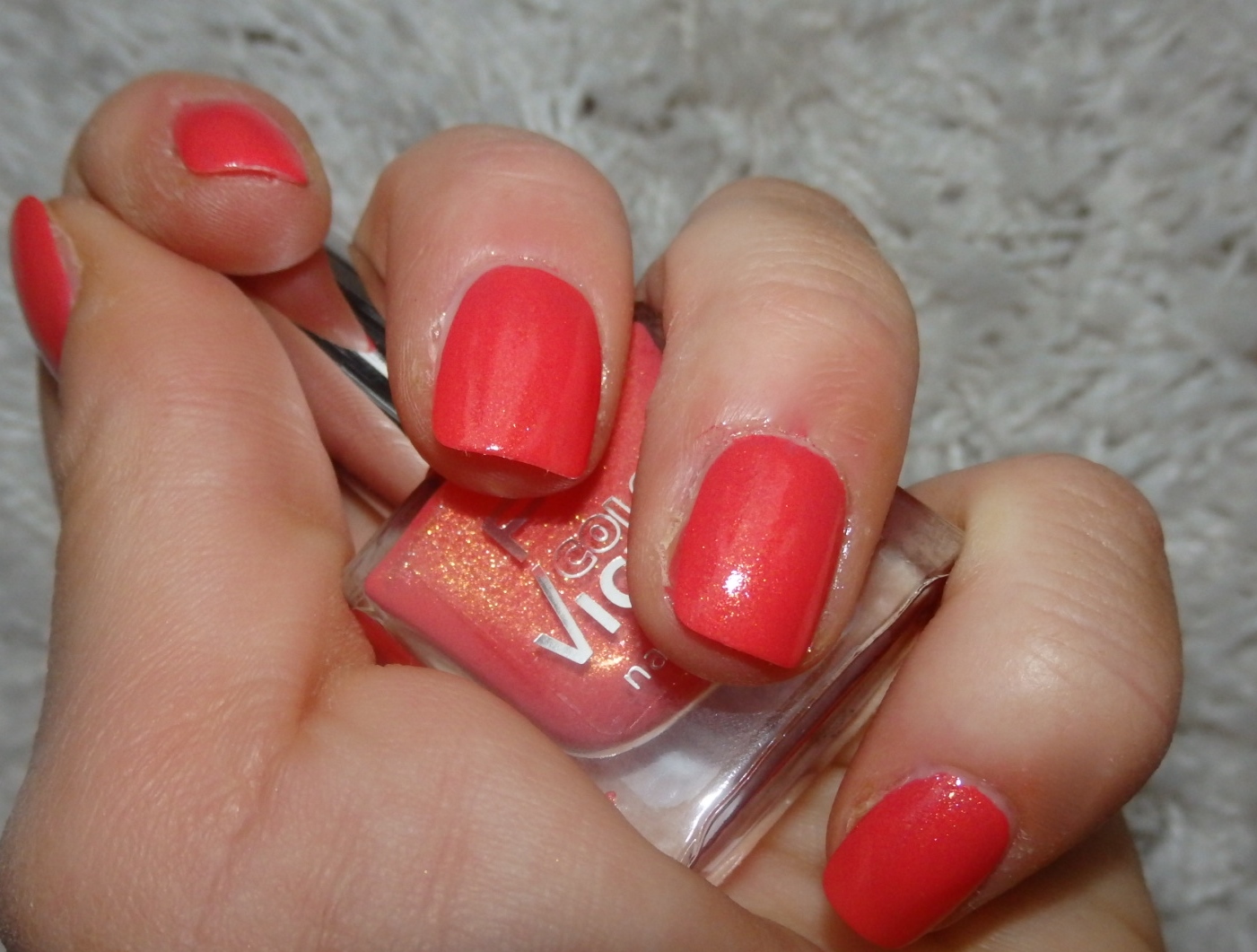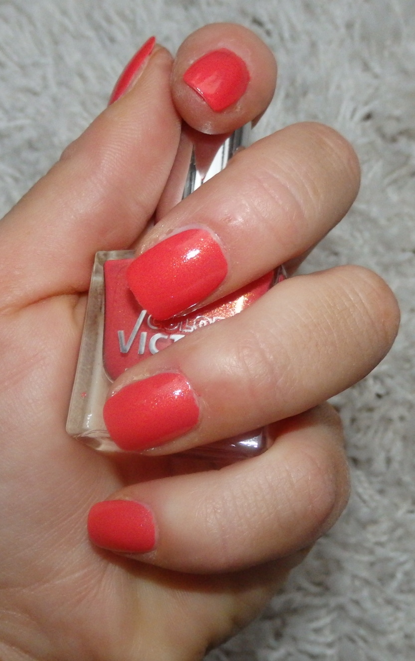 …er funktioniert wirklich, der P2 Color Victim Nagellack mit dem so wohlklingenden Namen „Summer Calling“. übrigens eine der neusten Töne aus der P2 Color Victim Kollektion. Seit ich ihn vor ein paar Tagen in einem ortsüblichem DM entdeckt und getragen habe, scheint seit dem nonstop die Sonne, die Temperaturen sind moderat und man kann ab und zu auch schon mal den Schal weglassen. Den Sommer gilt es zwar noch eine Weile weiter zu rufen, allerdings schreit schon mal alles nach Frühling. Ebenso schreit dieser Lack nach sonniger Stimmung mit seinem koralligem Rot und winzige, entzückenden Goldpartikeln. Koralle scheint immer noch ein Sachen Nagellack ein Trend zu sein, P2 hat diese Version dann einfach mal mit ein bisschen Goldstaub, der besonders gut bei Sonnenlicht rauskommt, gepimpt. Koralle ist übrigens eine feine Sache hinsichtlich blasser Winterhaut. Der Kontrast wirkt zwar erst mal knalliger, allerdings schmeichelt so ein orangiges, wärmeres Rot auch heller Haut besonders. Die Hände und insebesondere die Adern, die ja bei blasser Winterhaut eher zu Vorschein gelangen, werden nicht so blaustichig betont, wie beispielsweise bei klassischen, kühlen Rottönen. Auf gebräunter Haut macht er sich dazu auch ganz hervorragend und ist somit auch saisonal betrachtet ein Allrounder…