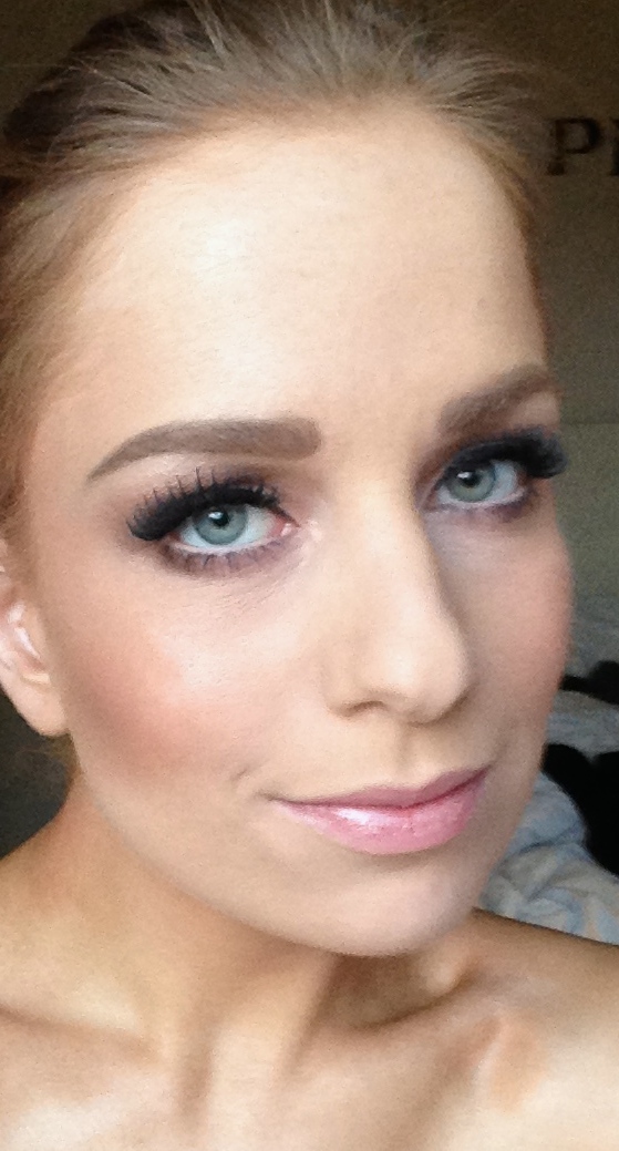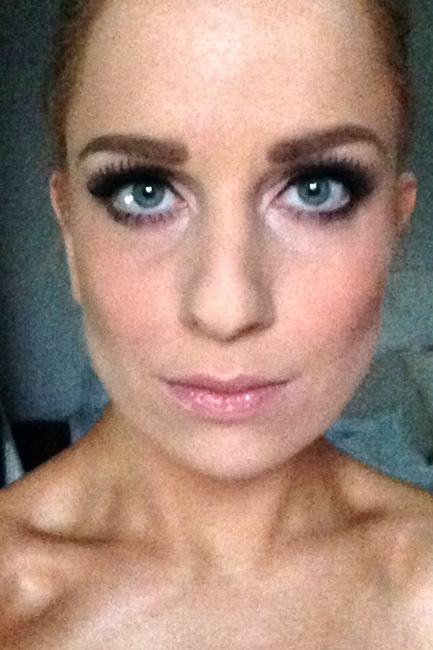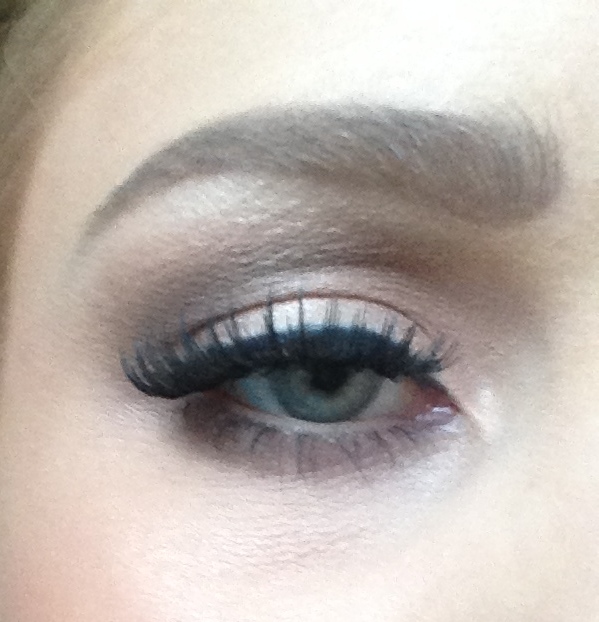 2. Augen: Brauen nachzeichnen mit Essence Eyebrowstyler #4 und MAC Browset fixieren, Wimpern formen mit dem Bobbi Brown Lashcurler, tuschen mit L’oréal Voliminous Waterproof Mascara und Dior Iconic Waterproof, danach Fakelashes (eyelure Katie Perry Kollekton #cool kitty) mit Duo Kleber anbringen und Wimpernansätze nochmal übertuschen