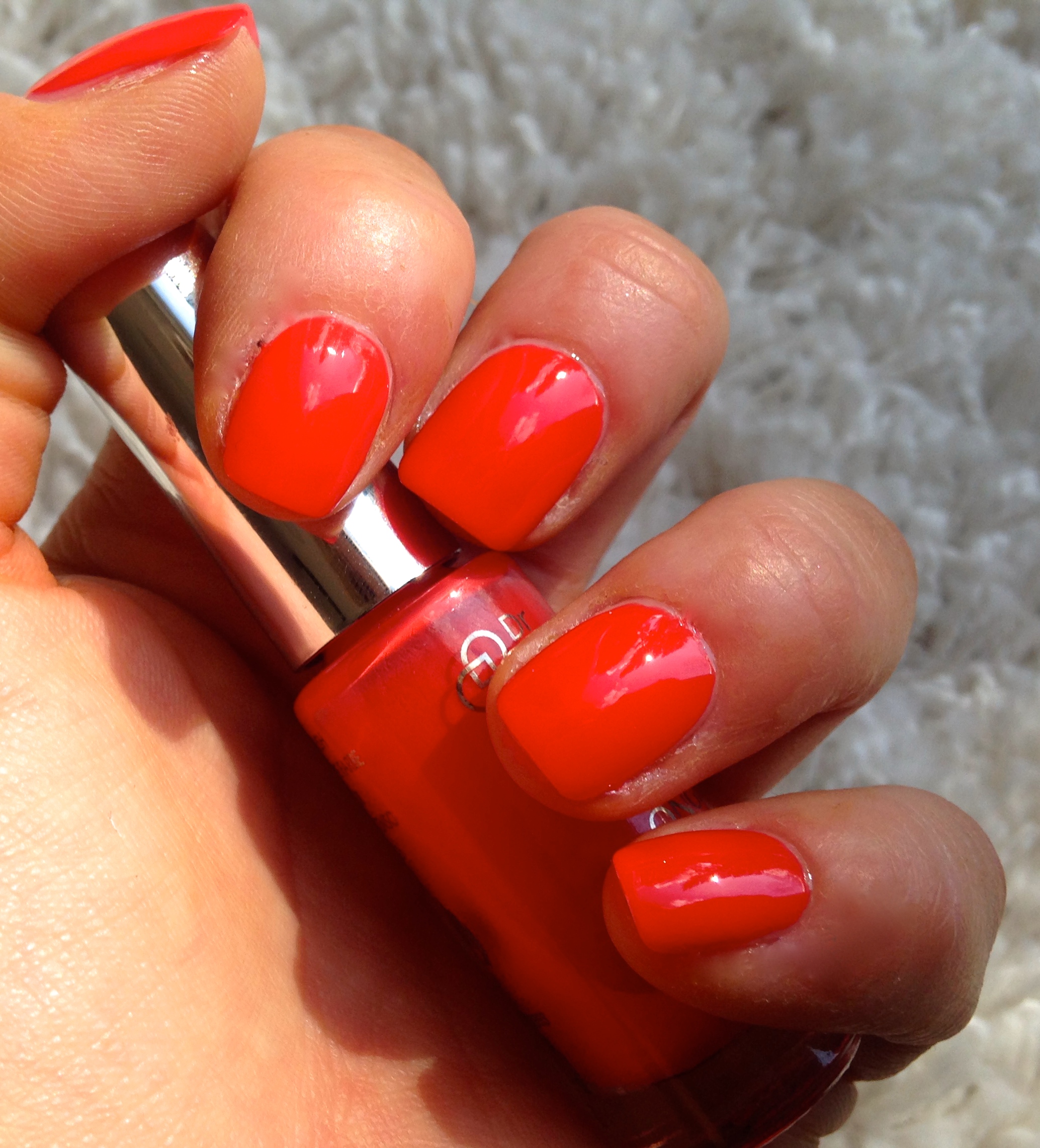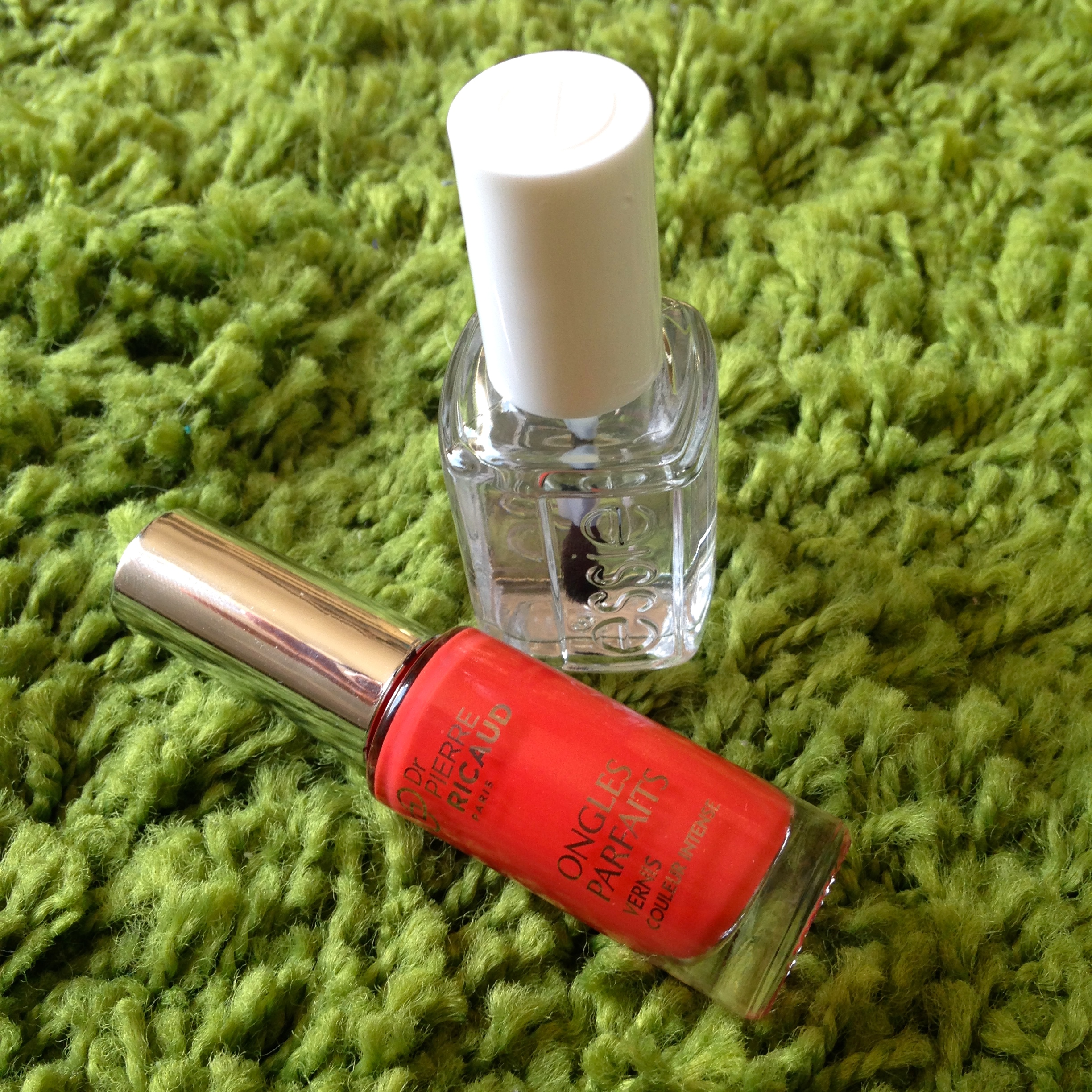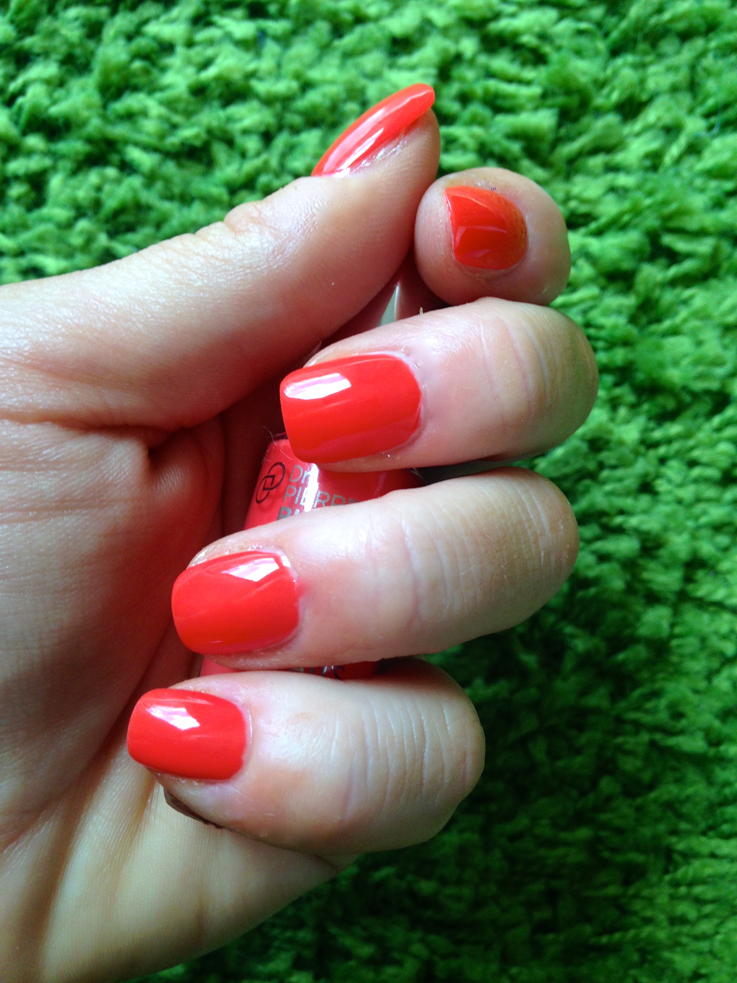 Zunächst einmal zu den Hardfacts, womit wir erst mal bei dem Hause Dr. Pierre Ricaud anfangen. Wie der Name schon erahnen lässt, handelt es sich um eine französische Kosmetikfirma, die zum Yves Rocher Konzern dazugehört. Laut meinen bescheidenen Googlerecherchen ist sie bei uns online und zwar hier erhältlich. Der Lack kommt in einem schmalem, zylindrischen Flakon mit 5,5ml daher mit einem normalem, flachem Pinsel. Kosten liegen laut Link hier aufgrund von Ermäßigung bei 4,50€, regulär sonst bei 9€. Der „Ongle Parfaits“ verspricht neben intensiver Farbe auch ein gewisses Leuchten, nicht nur beim Corail Lumineux, sondern auch bei anderen Farben. Ich für meinen Teil kann schon mal folgenden Senf dazugeben, der Auftrag mit einem deutlich längeren Pinsel als z. B. bei Chanel, P2 oder Dior hat sich sehr angenehm gestaltet und auch mit der linken Seite (ich bin Rechtshänderin) hatte ich den Eindruck, dass es ein wenig leichter als sonst geht. Aufgepinselt habe ich in 2 Schichten und als Basecoat Evergreen Essie Good to go verwendet. Das gewissen Leuchten dieser Farbe mag vielleicht den Fotos entspringen. Das Ergebnis war nicht nur zufriedenstellend, sondern in genannter Kombination auch noch haltbar. Ich habe ohne nennenswerte Tipwear oder Absplitterungen sogar einen Ikeatrip samt Möbelschleppen und eine komplette Zimmerrenovierung durchgestanden. Das sind die 4,50€ für 5,5ml doch alle Mal wert.