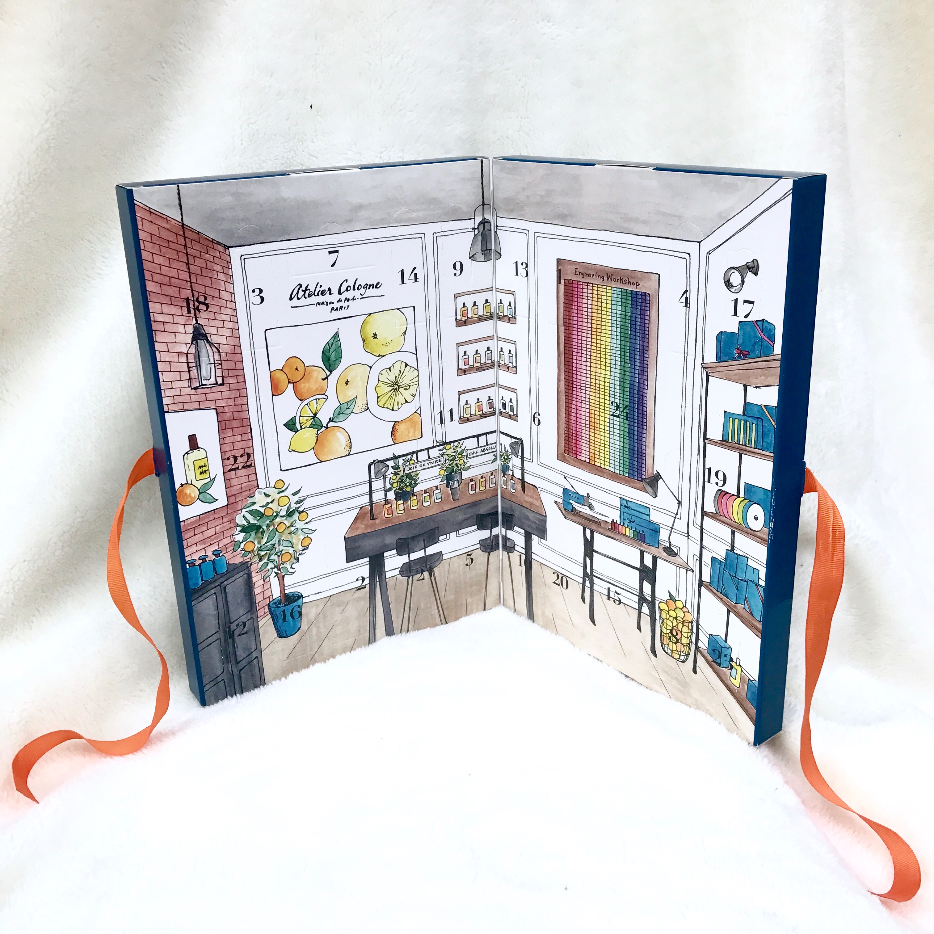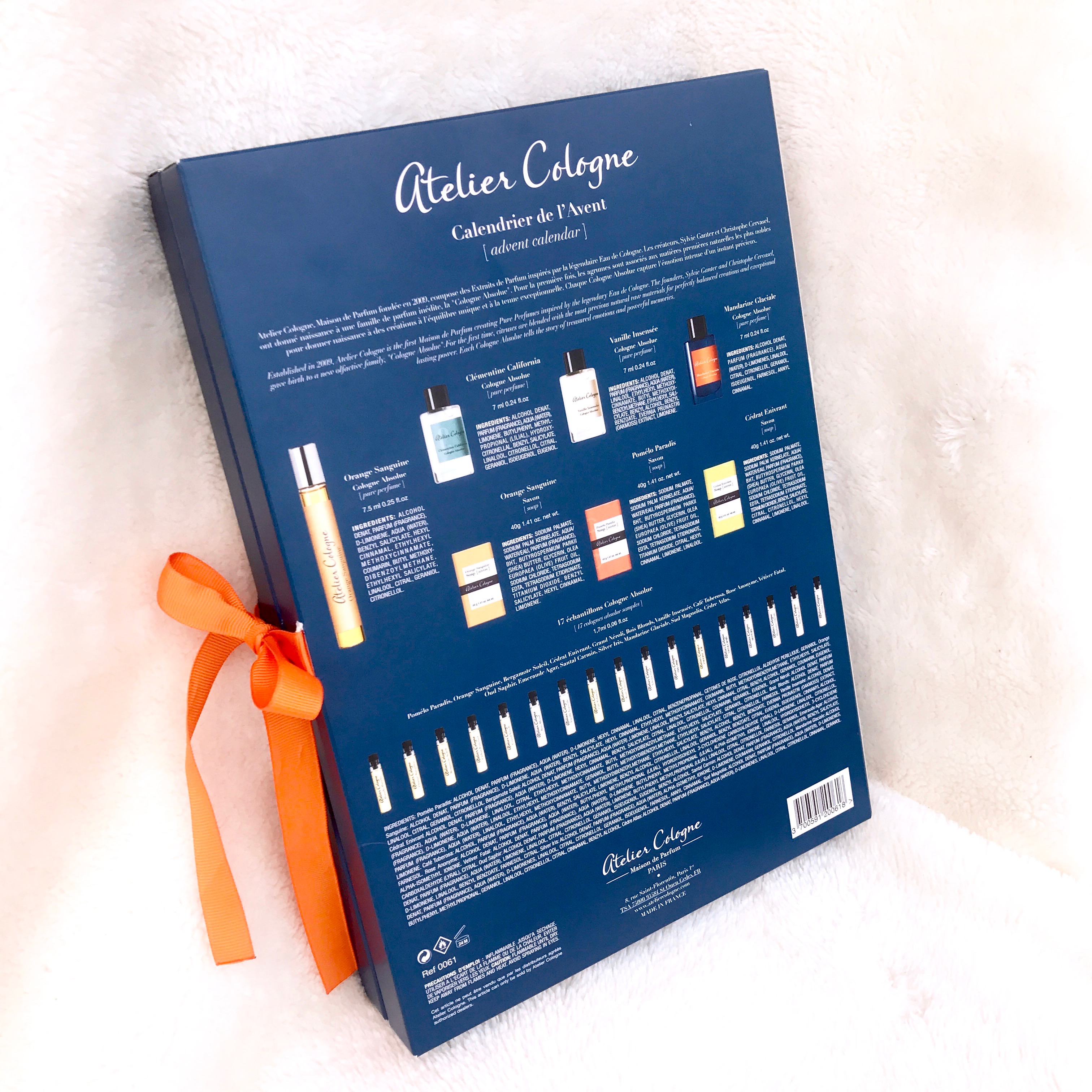 Kalender Nummer Eins, der mein Durchhaltevermögen in Sachen Geduld bis 01.12.2017 auf die Probe stellt: Der Weihnachtskalender, übrigens der Erste dieser Art von Atélier Cologne mit 24 Minidüften, sechs davon in Luxusreisegröße. Ich habe schon ein Auge drauf geworfen, da der Inhalt freundlicherweise auf der Rückseite abgebildet ist und mein Favorit Vanille Insensée darin als solche Luxusreisegröße dabei ist. Der Dezember wird also täglich schon mal gut duften. Das Label Atélier Cologne hat sich, wie der Name schon verrät, an dem berühmten Kölnisch Wasser inspieren lassen. Aber dahinter steckt noch mehr an olfaktorischen Background…