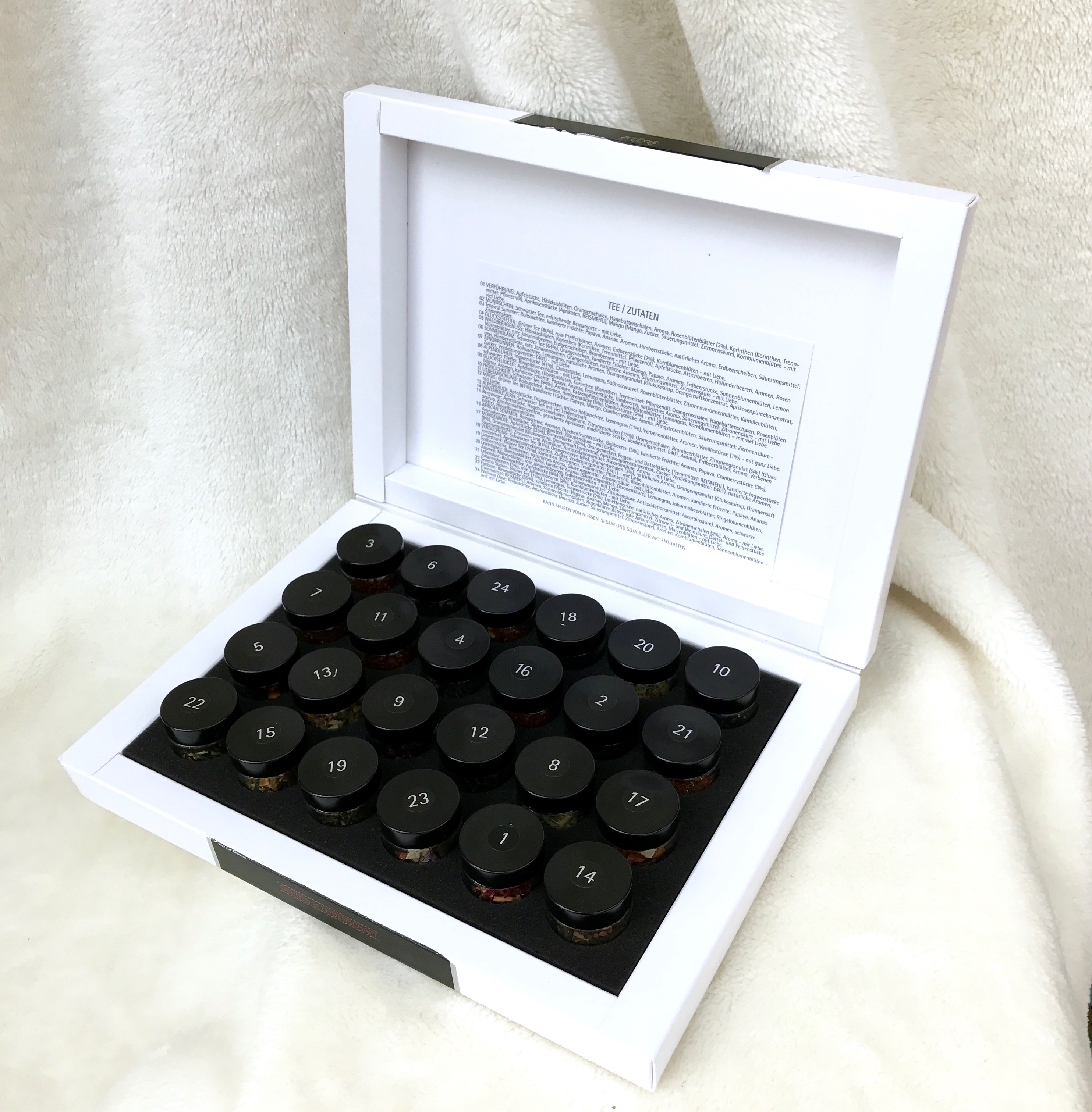 Das ist auch für mich neu, ein Adventskalender mit Tee. Ich liebe Tee! Da die Kaffeesucht ungeachtet seit jeher an mir vorbeigezogen ist, blieb ja neben Wasser nur eine Vorliebe für Tee in Sachen Getränken übrig. Umso mehr willkommen, dass man die weihnachtliche Vorfreude nun auch in Tassen packen kann.